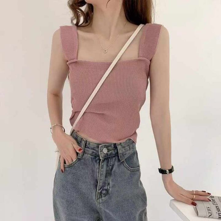 夏季新款韩风亮色小清新净版简约冰丝针织背心吊带,独...