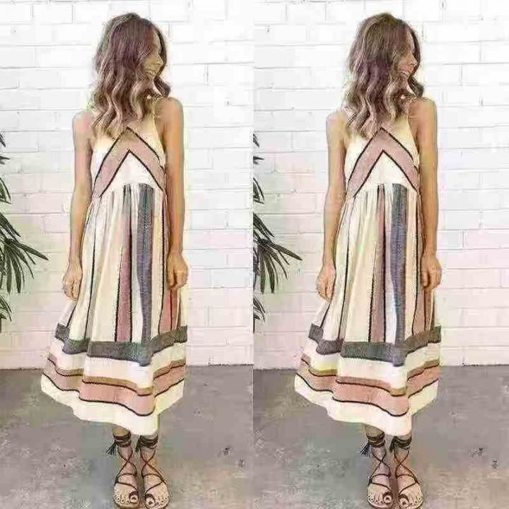 5.8元秒杀[發][發] 时尚印花沙滩休闲百搭中长裙无袖连衣裙,独立包装,码数s-xl,数量160件。