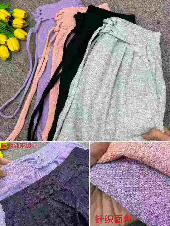 时尚潮流绑带阔腿显瘦运动裤子,独立包装,整款4色,大货灰粉为主,XL码裤长95厘米,码数M-2XL,数量1066条,分货加1,货号114#17