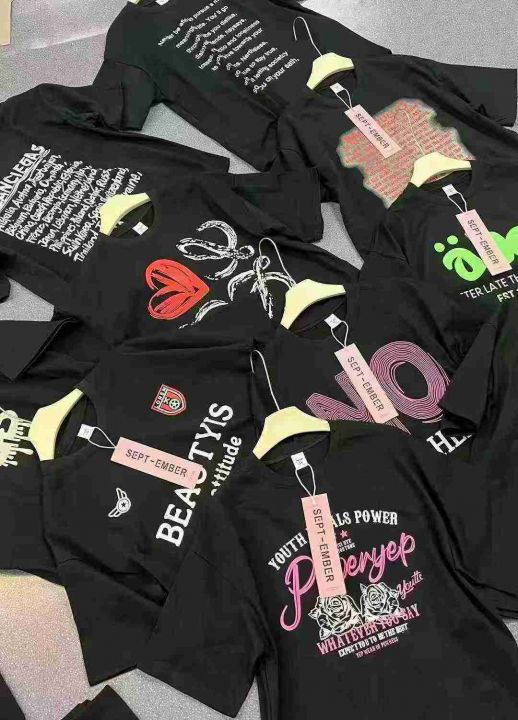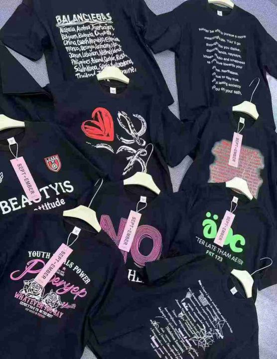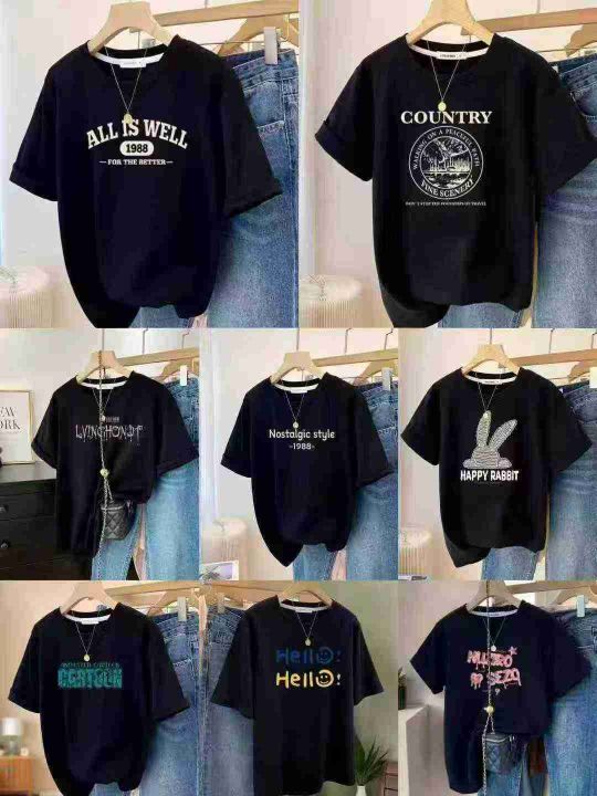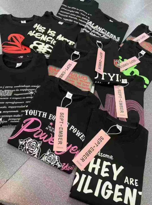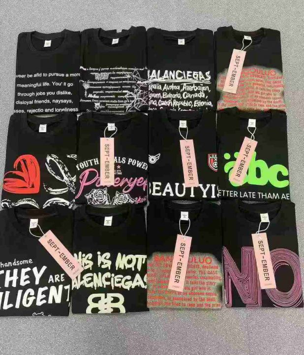 均码, 宽松版 ,统一吊牌独立包装。单款黑色多花型,潮牌短袖T恤女夏季新款爆款美式宽松纯棉半袖设计感小众上衣