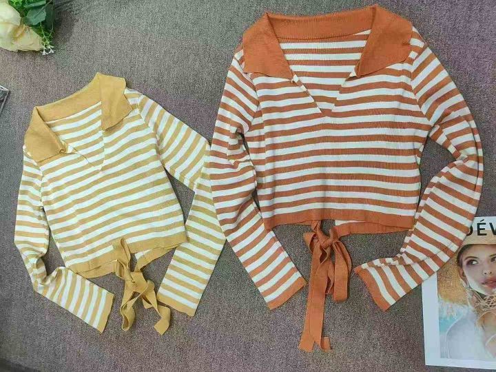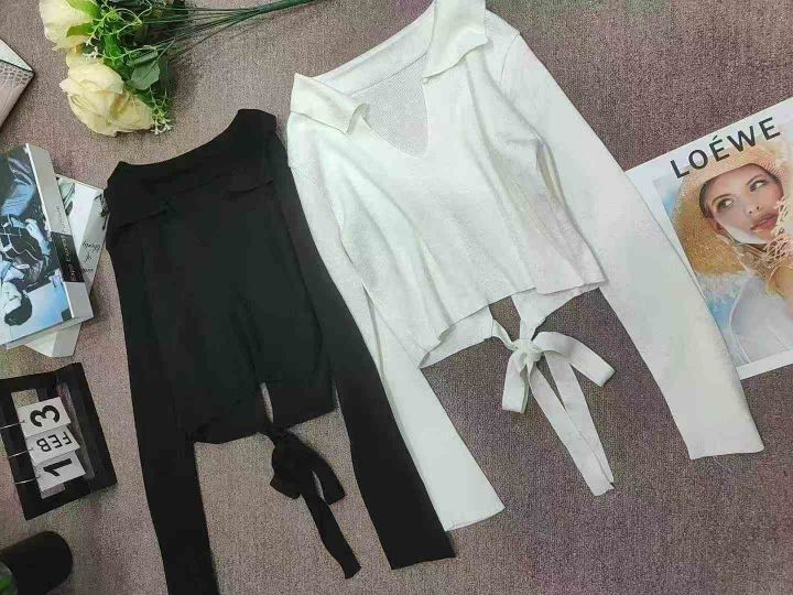 翻领针织套头修身V领针织衫绑带针织上衣,独立包装,1200件,清7.5,分➕1
