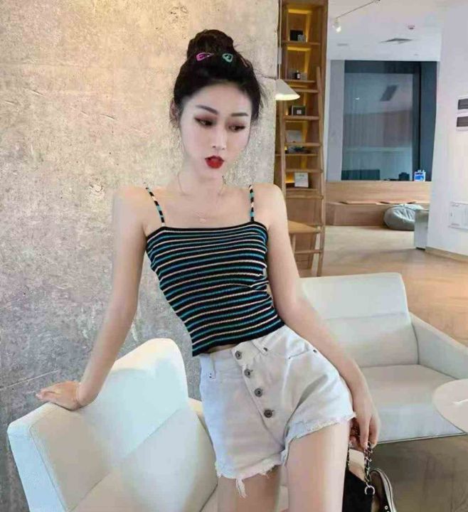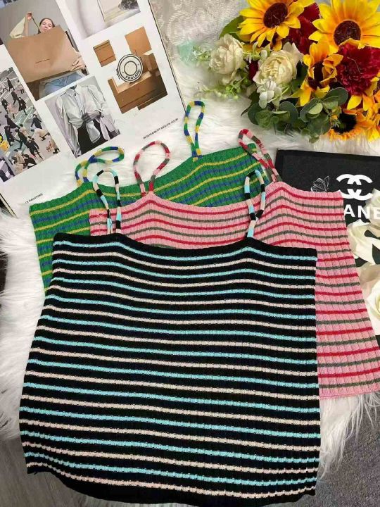 捡漏款,夏季新款撞色彩虹条纹小心机针织吊带,独立包...