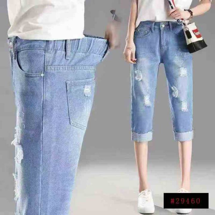 破洞女士牛仔松紧高腰修身显瘦牛仔裤,整款2折颜色,数量170条,26-33码,福利价8.8秒杀(601.8829#)@_@