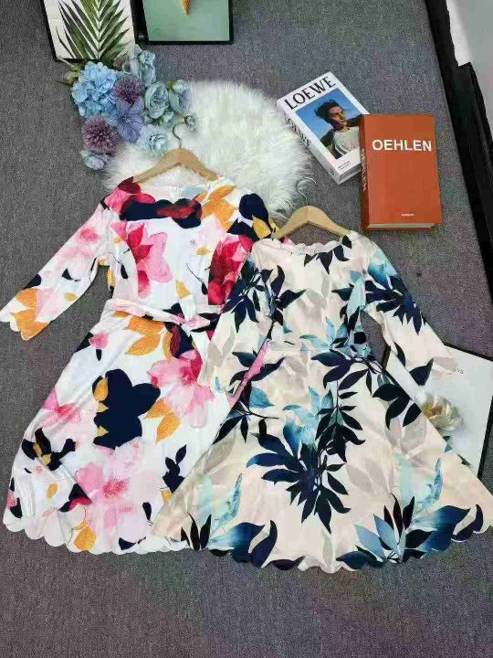 腾仓库,亏本清仓840件性感V领长袖黑色拼接印花大摆裙。花型多,面料舒适,...