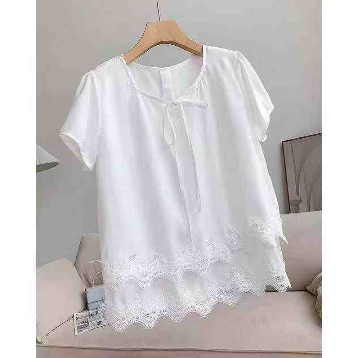 ☕️大码女装胖mm层叠花边蕾丝拼接白色夏季宽松气质显瘦衬衣上衣白色188件...