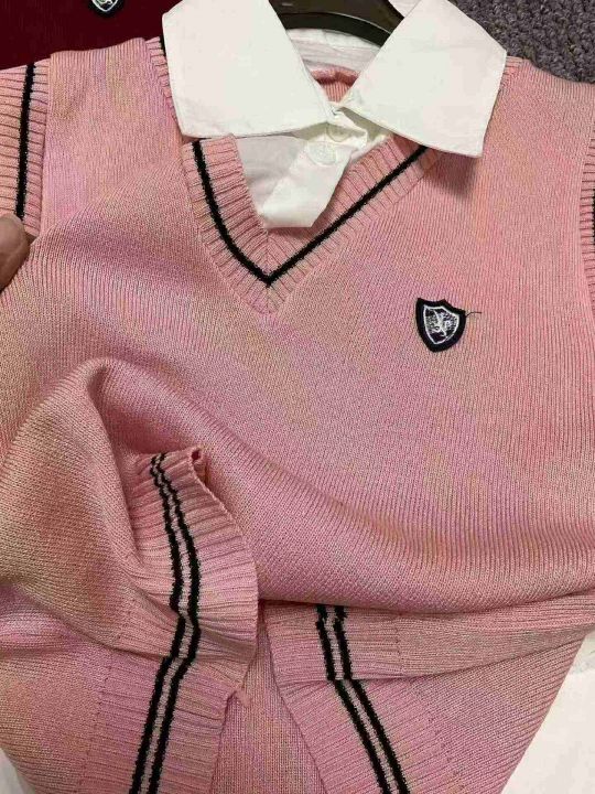 春季新款复古学院风小标假2件衬衣拼接套头毛衣,独立...