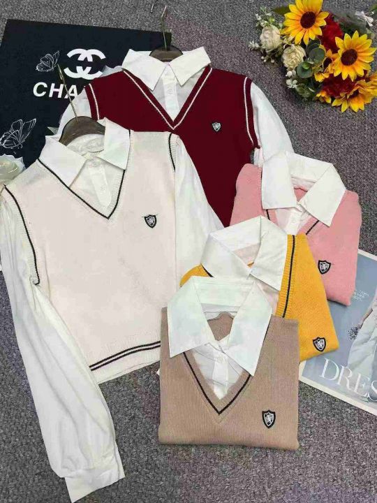 春季新款复古学院风小标假2件衬衣拼接套头毛衣,独立包装,均码面料柔软舒适有弹力,单款多色,417件,全清6.9元超低价秒杀!分货加一!