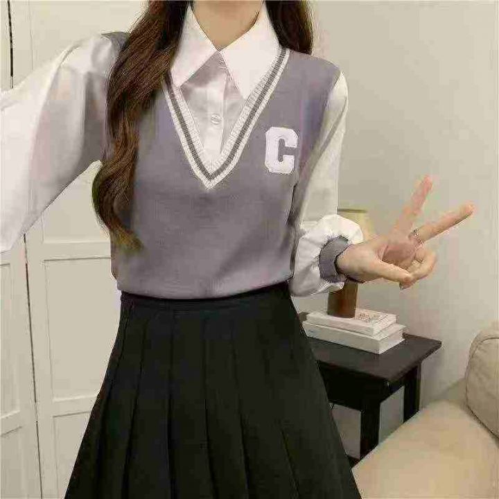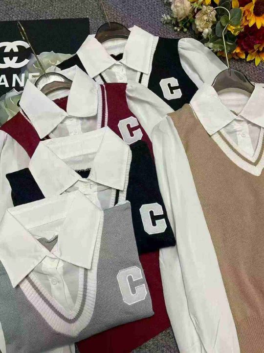 春季新款复古学院风刺绣小标假2件衬衣拼接套头毛衣,独立包装,均码面料柔软舒适有弹力,单款多色,654件,全清6.9元超低价秒杀!分货加一!