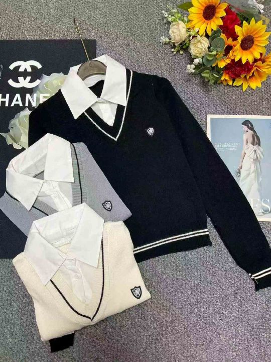 春季新款复古学院风刺绣小标假2件衬衣拼接套头毛衣,独立包装,均码面料柔软舒适有弹力,单款多色,125件,全清6.9元超低价秒杀!