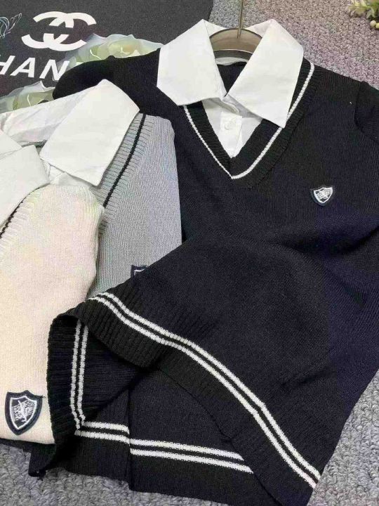 春季新款复古学院风刺绣小标假2件衬衣拼接套头毛衣,独立包装,均码面料柔软舒适有弹力,单款多色,125件,全清6.9元超低价秒杀!