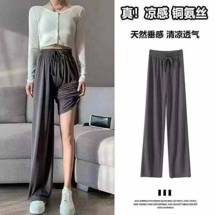春夏季新款高腰冰丝垂感宽松直筒窄版阔腿休闲裤,独立包装,面料顺滑有弹力...