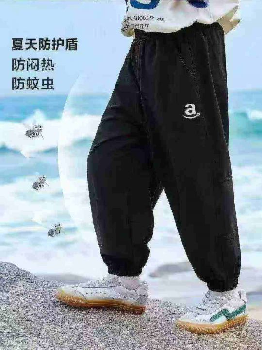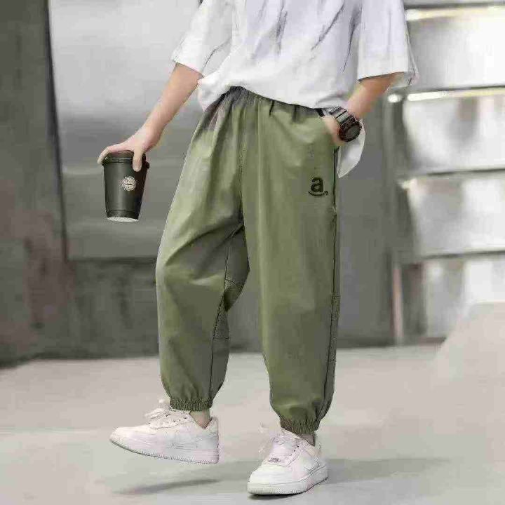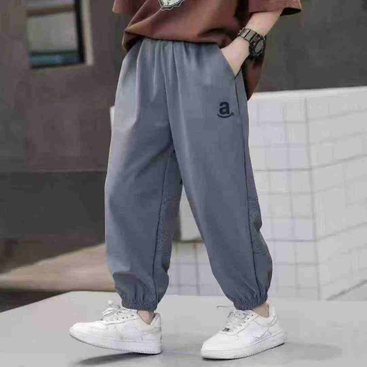 天猫在售款1000件左右高品质中大童四面弹冰丝透气束脚休闲裤,裤脚透气孔设计,带弹力,单款三色,码数120-170,独立包装