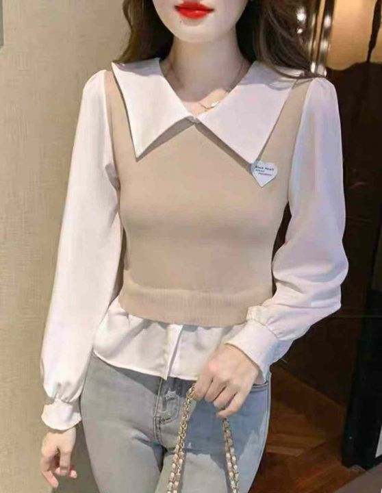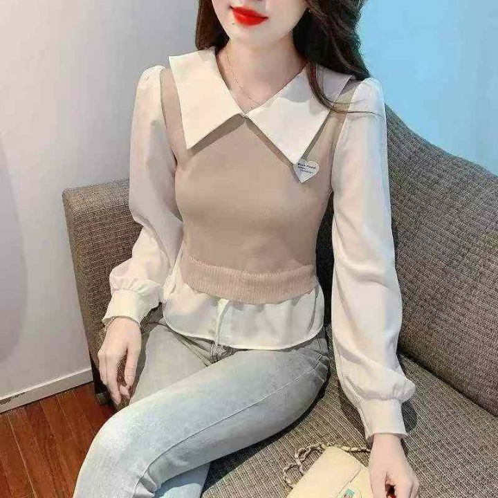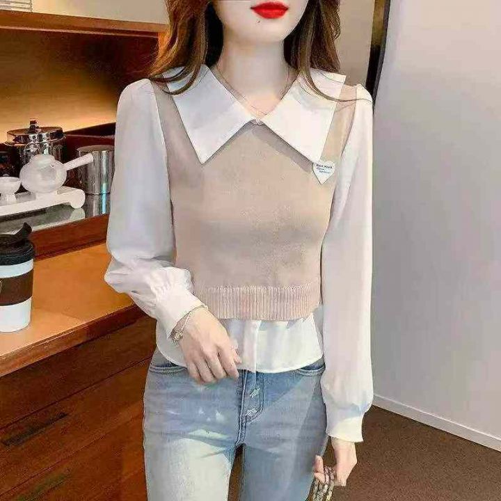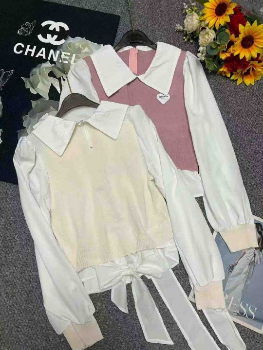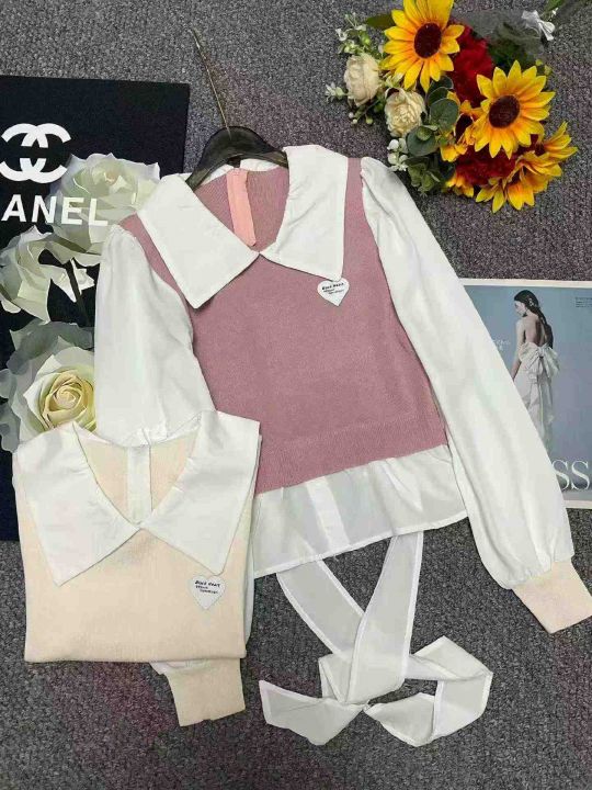 春季新款复古学院风刺绣小标假2件衬衣拼接套头毛衣,独立包装,均码面料柔软舒适有弹力,单款多色,100件,全清6.9元超低价秒杀!
