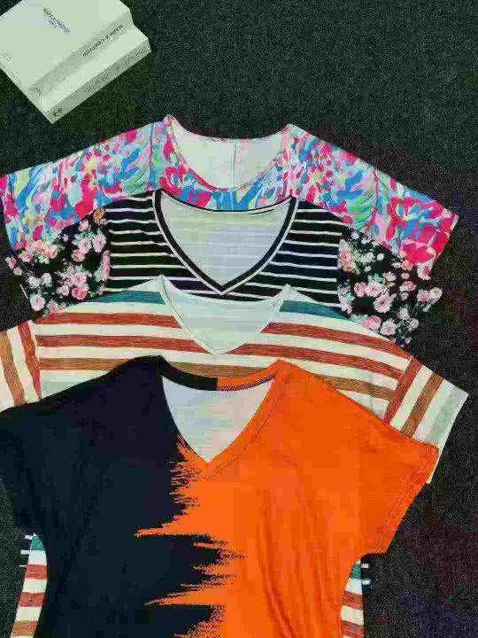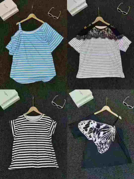 女装外贸短袖印花条纹夏季时尚T恤上衣,独立包装,码数S-XL,780件,分货加1,货号001#30