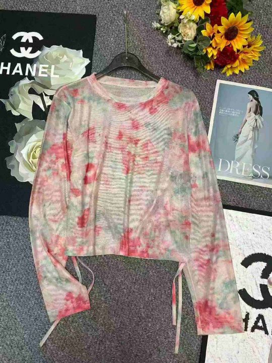 春夏季新款网红扎染设计感小众网纱防晒冰丝长袖空调衫...