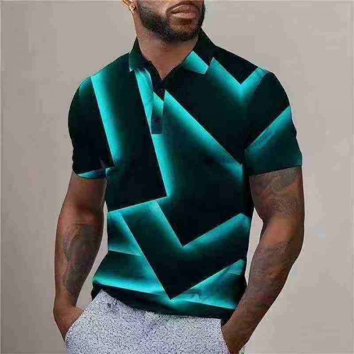 新款男装Polo衫3D印花男士服装夏季休闲短袖上衣时尚(...