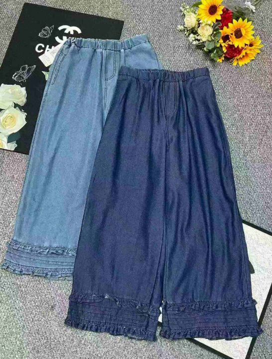 夏季新款花边拼接纯色减龄显瘦直筒阔腿牛仔裤,独立包装带吊牌,码数M-3XL码,150件,全清8.8元超低价秒杀!