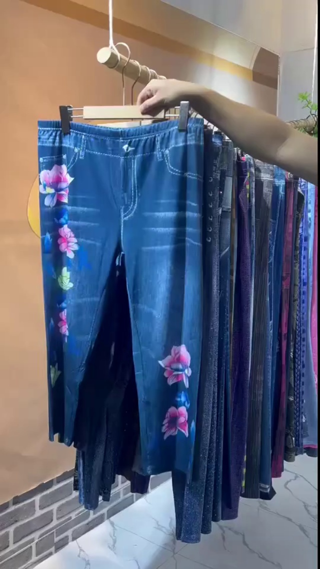 全清6.8元。5000条左右高弹力冰丝仿牛仔女裤,独立包装,码数XS-6XL,视频...