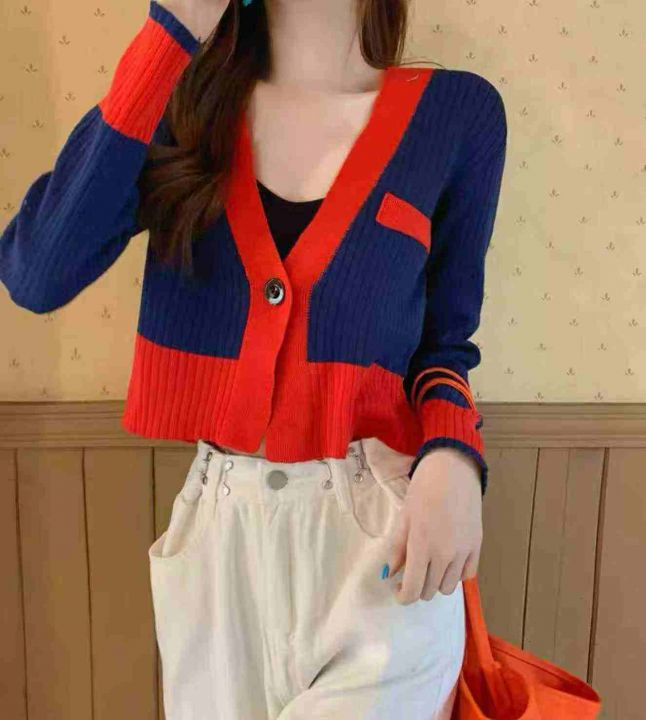 春秋新款V领拼色韩版小香风一粒扣针织毛衣开衫,独立包装,均码面料软糯舒适弹力大,997件,全清5.9元超低价秒杀!分货加一!