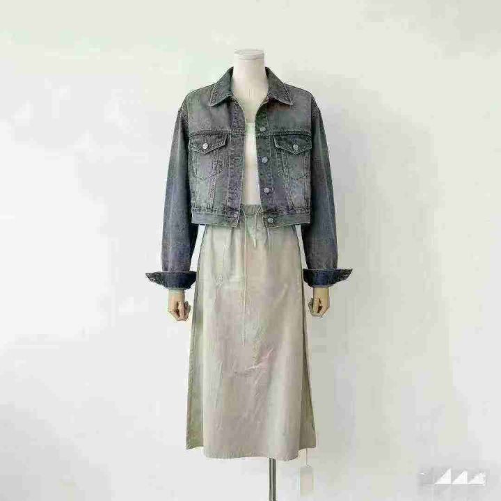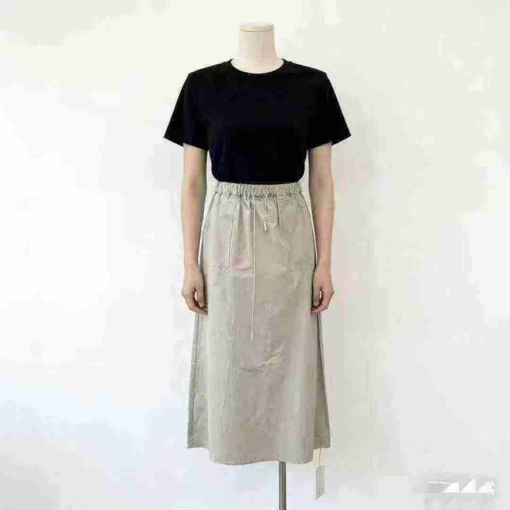 韩系新款复古高腰双口袋工装半身裙绑带松紧宽松A字裙休闲半身裙,高品质尼龙锦纶面料,独立包装