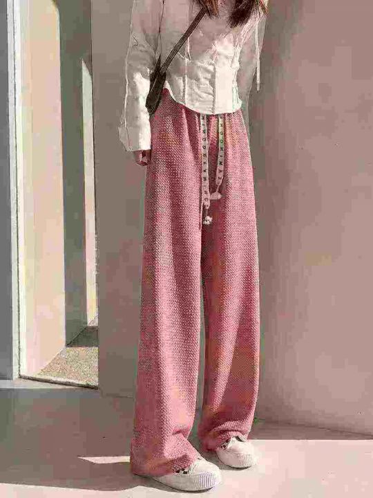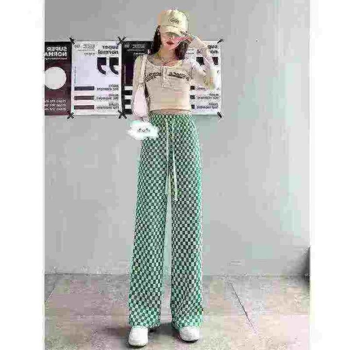 3360条泡芙裤女冰丝薄款宽松阔腿裤垂感棋盘格裤子,3...