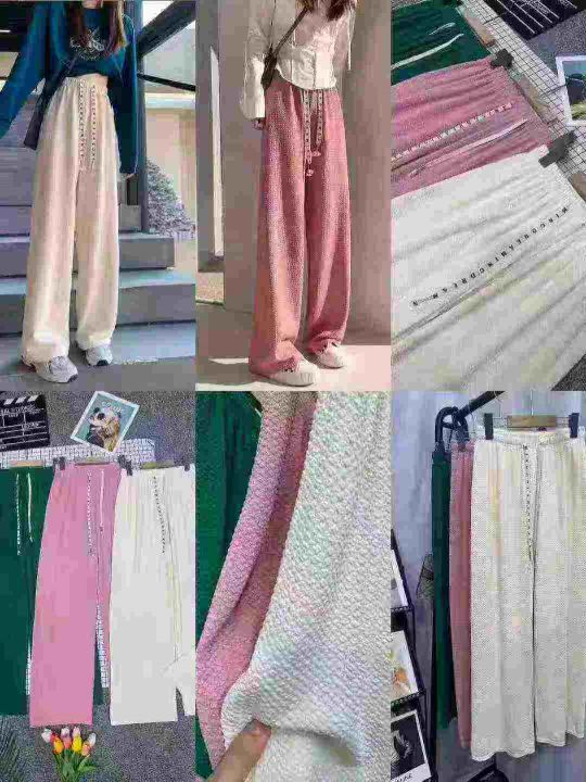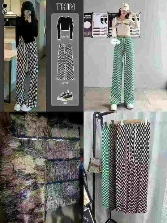 3360条泡芙裤女冰丝薄款宽松阔腿裤垂感棋盘格裤子,3个整款多个颜色,独立包装,码数S一XXL,全清7.8分货加1
