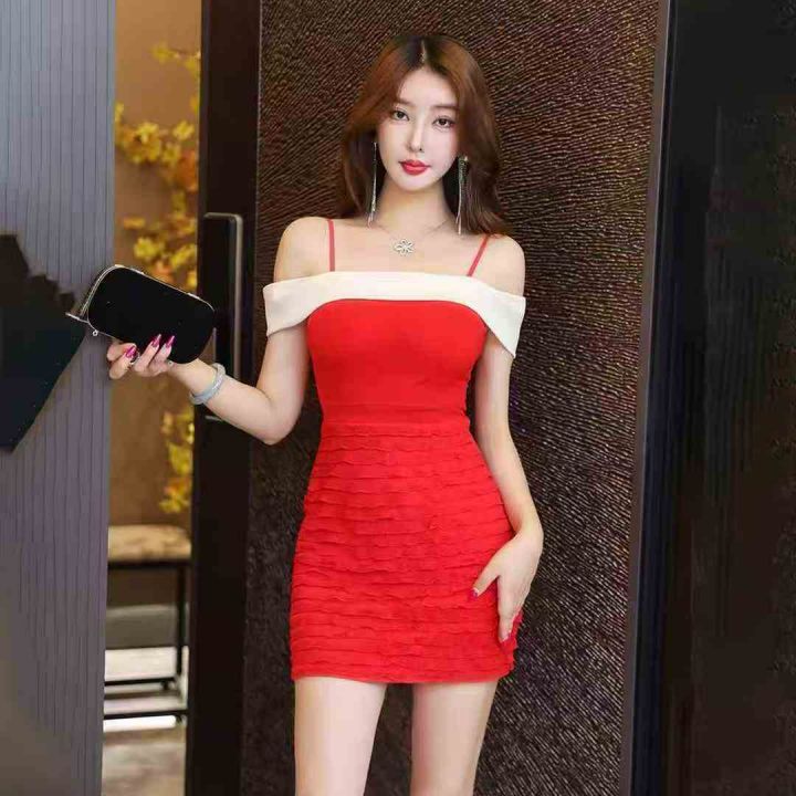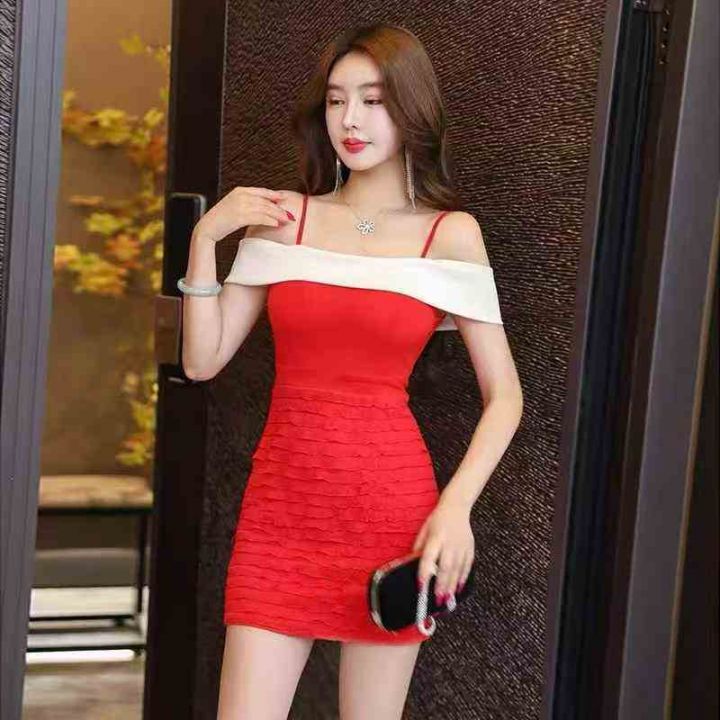 74条韩版一字肩性感吊带晚礼服包臀短款低胸气质高端名媛拼色连衣裙显瘦,尺码M-3XL,没带胸垫,做工品质好,福利秒杀价6.8 不分货