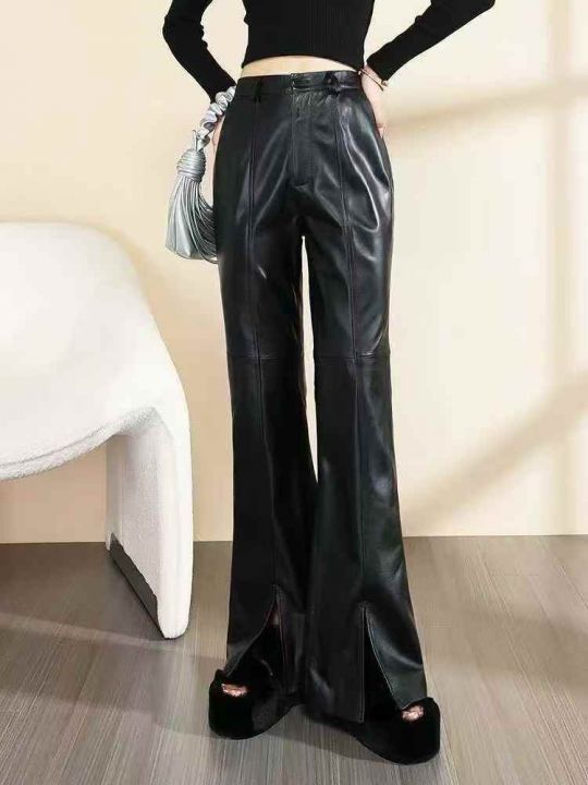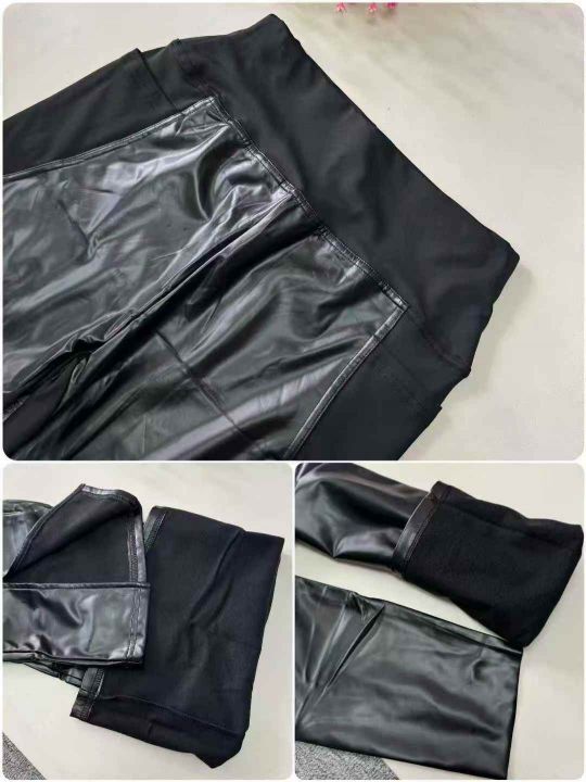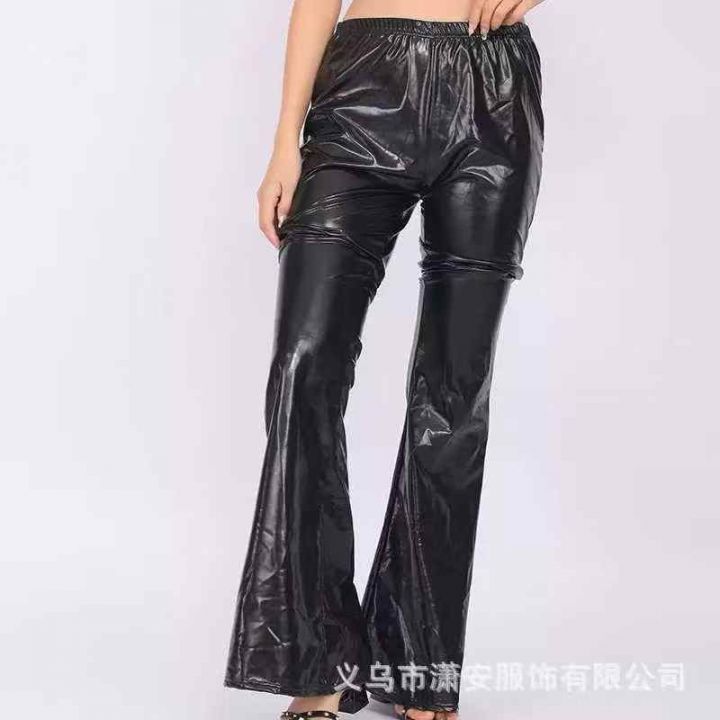黑色PU辣妹修身小脚喇叭高腰显瘦百搭加绒皮裤,品质好,小整杂,数量:430件左右,码数:XS-2XL,独立拉链包装(模特图仅参考)。