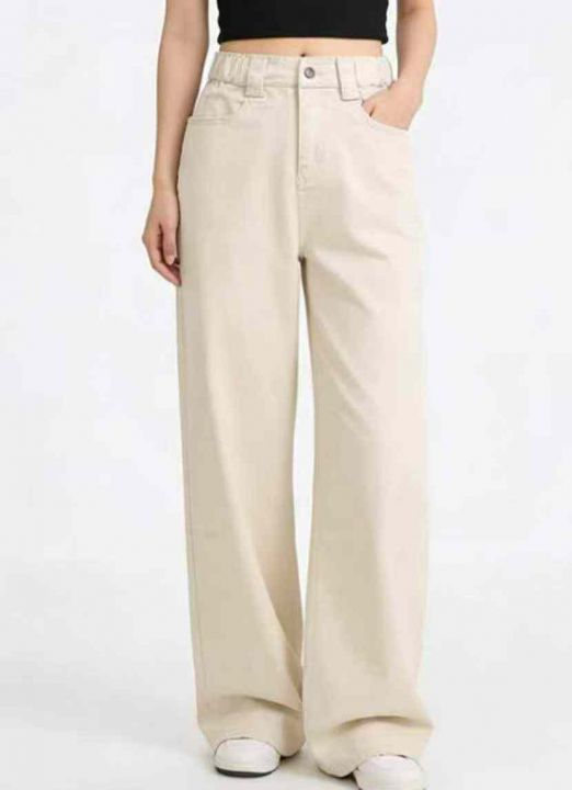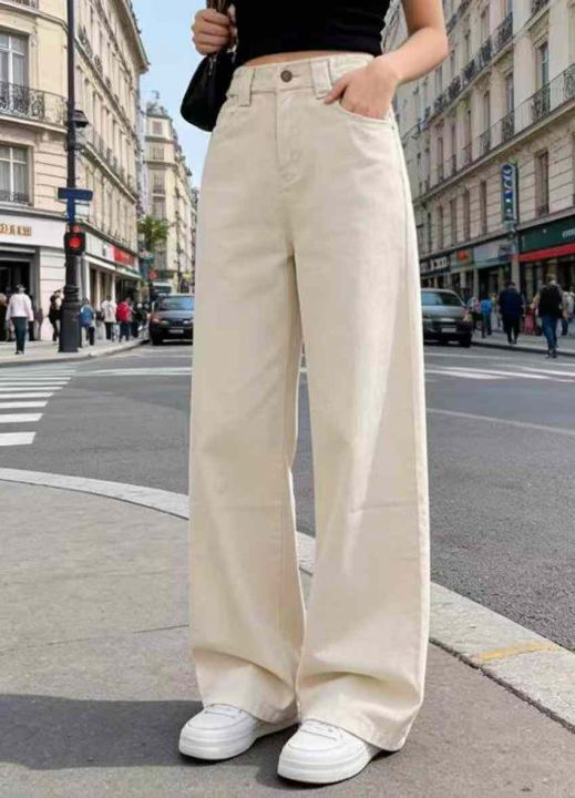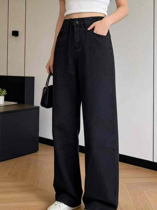 春季新款半松紧腰高腰宽松直筒阔腿牛仔裤,独立包装带...