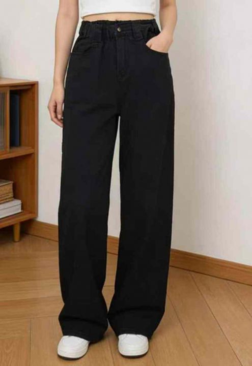 春季新款半松紧腰高腰宽松直筒阔腿牛仔裤,独立包装带吊牌,码数S-XL码,565件,全清8.8元超低价秒杀!分货加一!