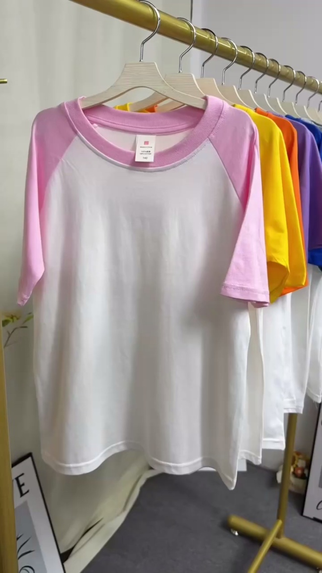 全清3.5分货+0.5夏季新款童装纯棉短袖T恤插肩圆领男女撞色拼接上衣,10件一...