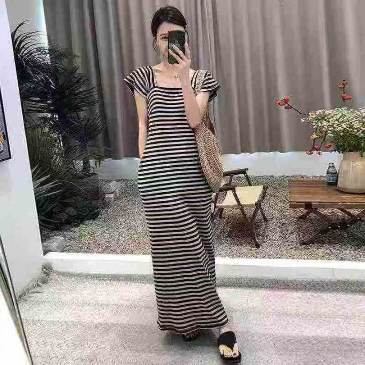 全清6.8元天猫在售款400件左右高品质夏季小个子撞色条纹方领短袖连衣裙,码...