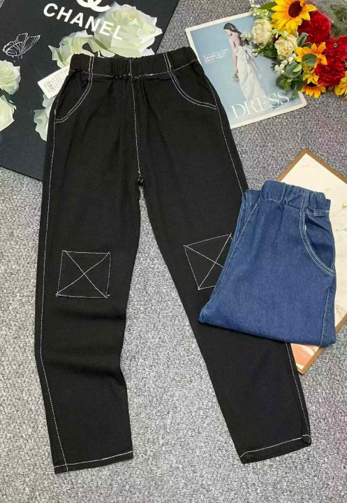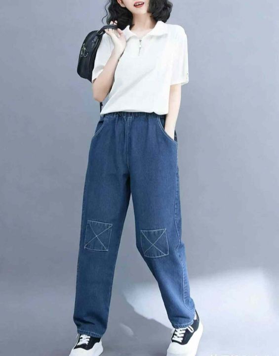 春季新款复古洗水棉高腰宽松设计款松紧腰牛仔老爹哈伦裤,独立包装,码数S-2XL码 ,1153,全清7.8元超低价秒杀!分货加一!