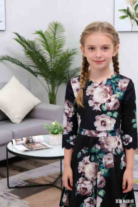 外贸wish新款时尚新印花中袖童装连衣裙,数量:921条,码数:6Y-14Y(6岁-14岁)独立包装 分货➕1(货号309#11)