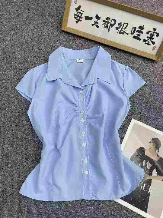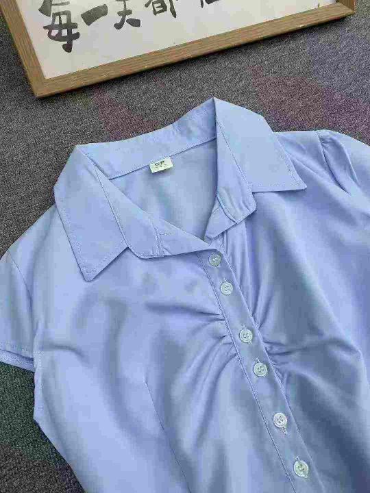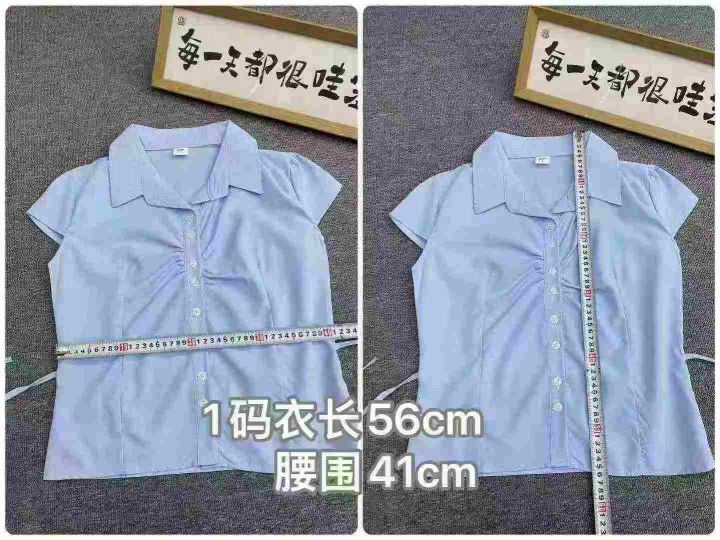 纯色简约靓妹衬衫196件7.5,褶皱设计,绑带收腰,码数...