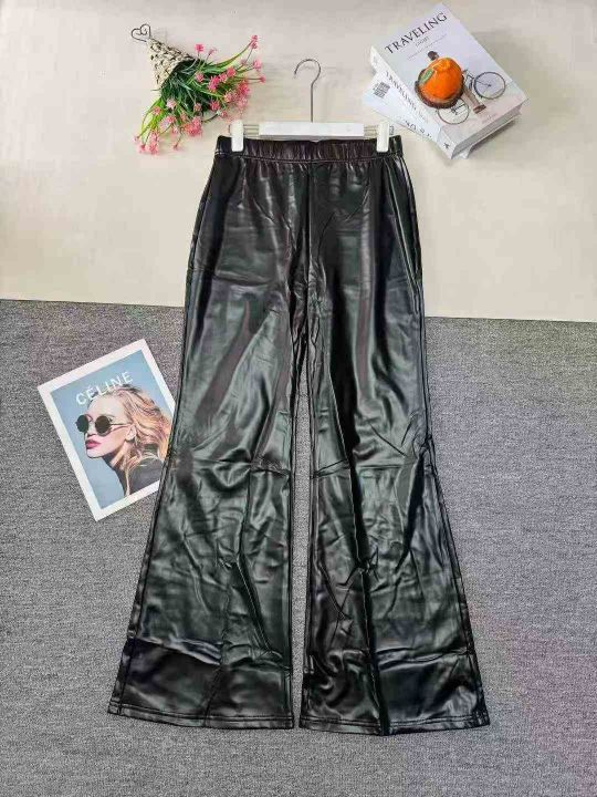 黑色PU辣妹修身小脚喇叭高腰显瘦百搭加绒皮裤,品质好,小整杂,数量:430件左右,码数:XS-2XL,独立拉链包装(模特图仅参考)。