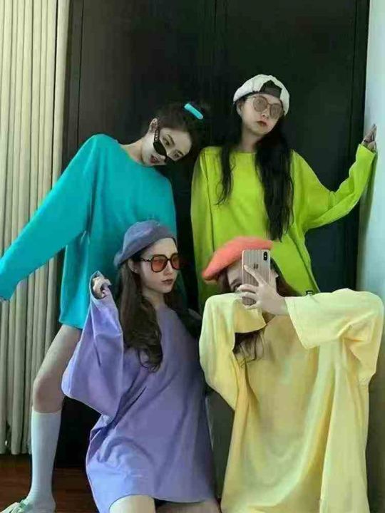 秋季新款韩版百搭姐妹装闺蜜套装宽松彩色纯棉长袖t恤500件,尺码S~XL独立包装货品干净整洁,宽松大版型,全清福利价5.9元