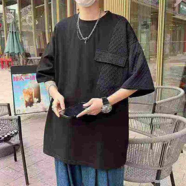 3️⃣新款男装设计感拼接宽松百搭上衣夏季潮流港风休闲男士短袖t恤138件,...
