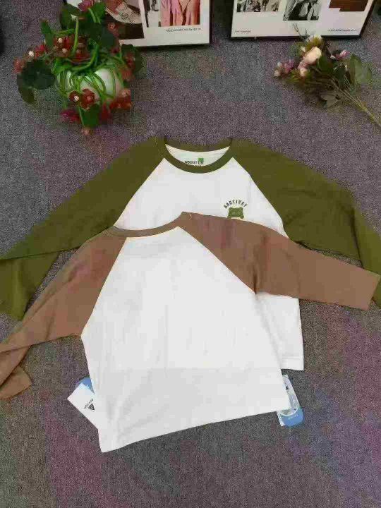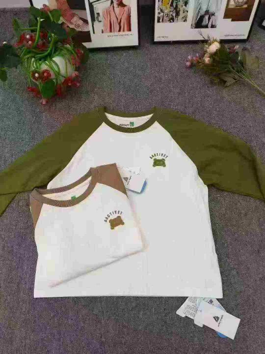 Ⓜ️全清7.8 童装春秋装插肩袖撞色上衣洋气长袖,数量100件,尺码110--160,胸前可爱小熊logo,面料柔软亲肤,后领包边,独立包装带吊牌