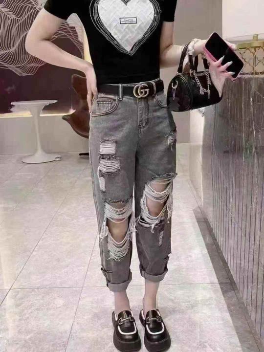 全清8.9 韩版破洞女装牛仔裤,夏季新款宽松显瘦,...
