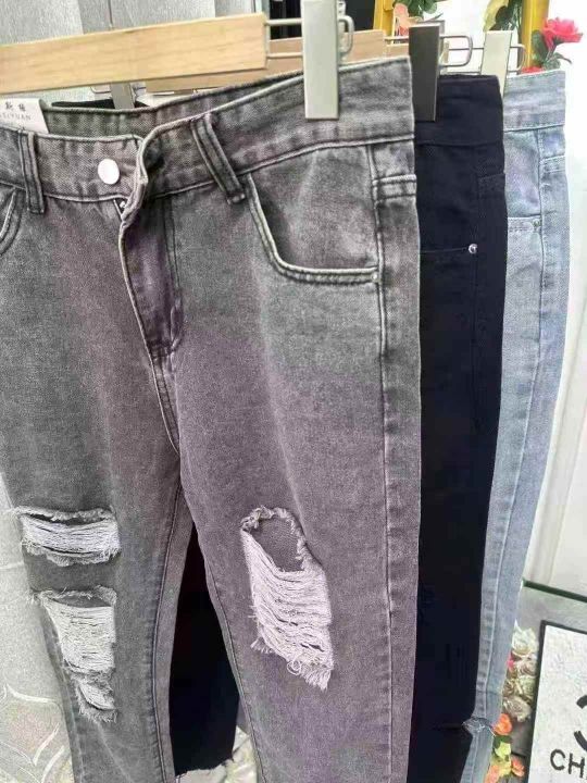 全清8.9 韩版破洞女装牛仔裤,夏季新款宽松显瘦,整款三色,码数s-2xl,全部独立包装,一共192条