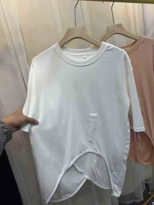 网红开衩不规则中长款中袖抽绳防晒衣t恤女夏洋气时髦防晒上衣潮,数量500左右,码数S一2XL,独立包装,全清5.8元,分货+0.5元