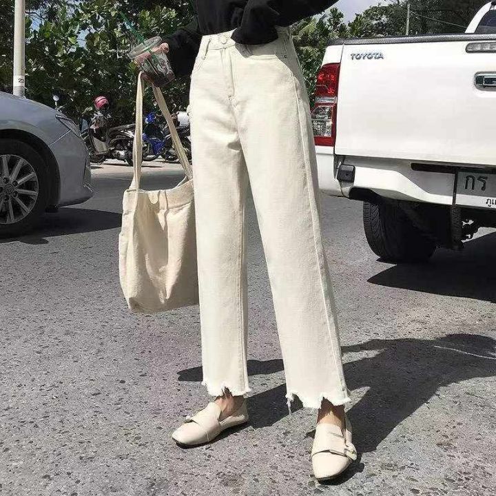 春季新款宽松毛边韩版阔腿直筒裤牛仔裤,独立包装,码...