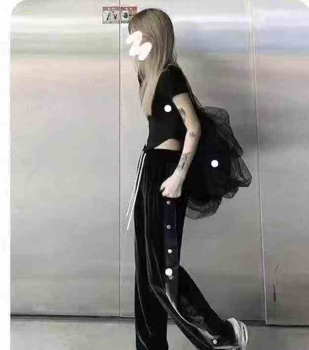 特价,特价,9.9一条,还有800多条,丝绒纽扣设计直筒裤,