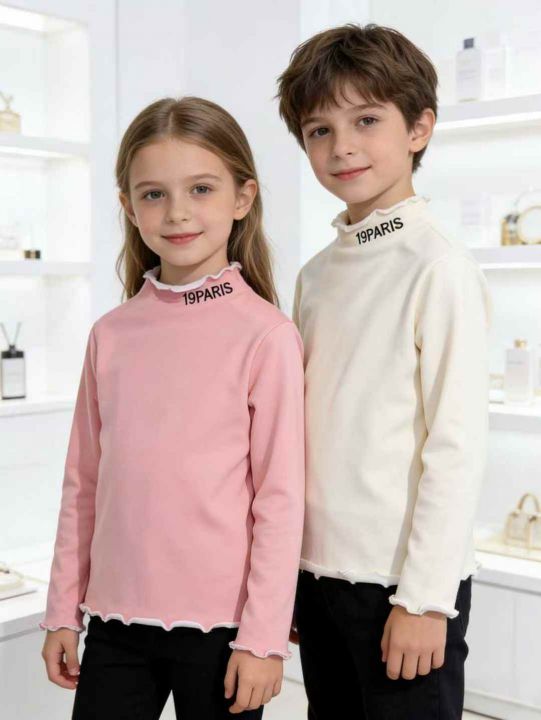 男女童装春装宝宝高领薄款加绒打底衫,码数2-6码,独...