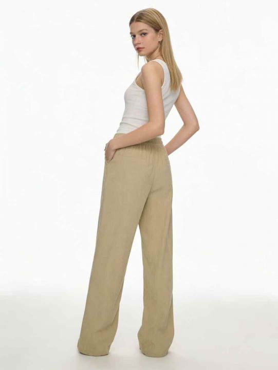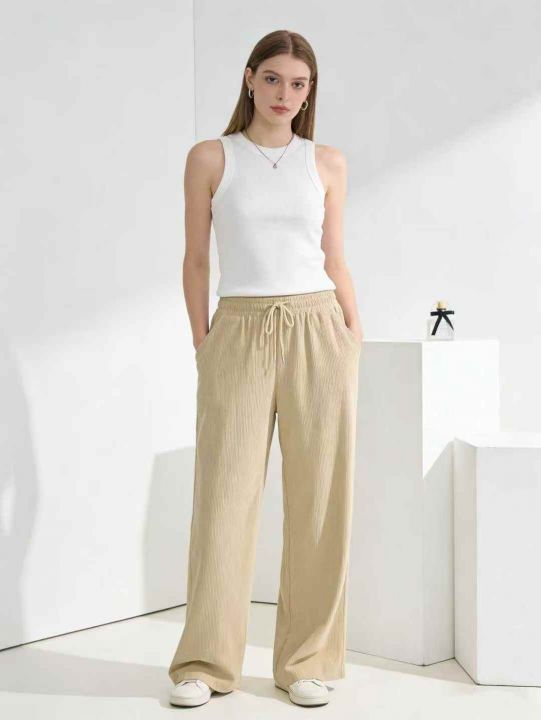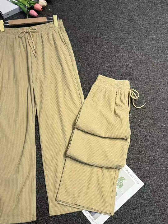 春季新品高腰松紧腰抽绳款直筒裤休闲裤宽松大码裤,独...