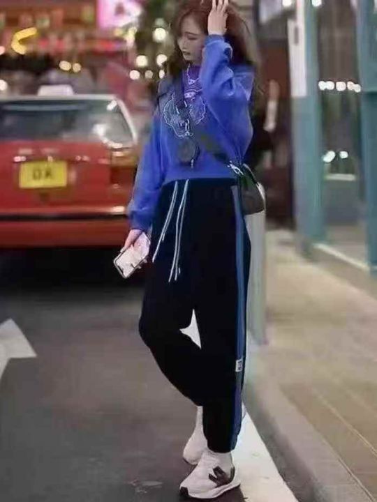 撞色条纹高腰阔腿牛仔裤女秋季宽松显瘦显高垂感直筒休闲长裤,独立包装,S ...