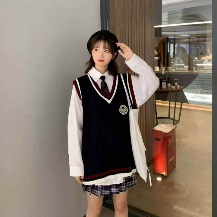 春秋新款韩系宽松百搭学院风刺绣小标针织毛衣马甲,独...