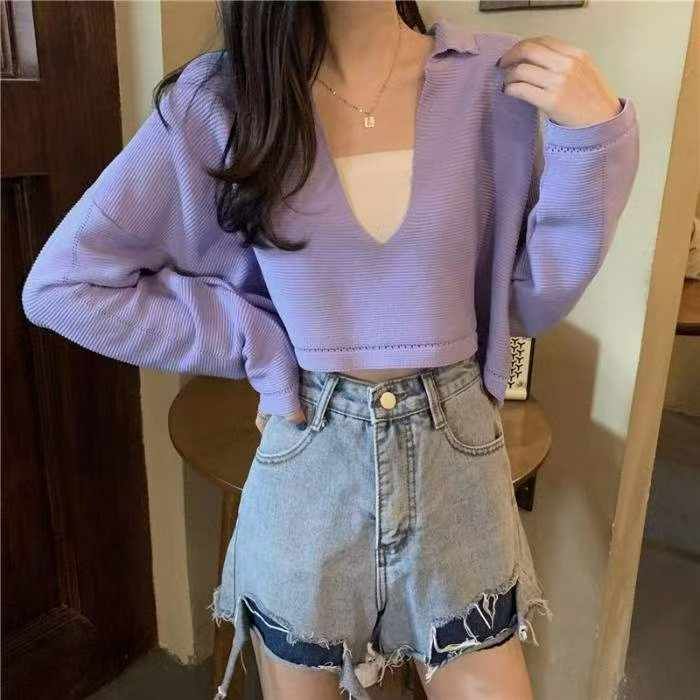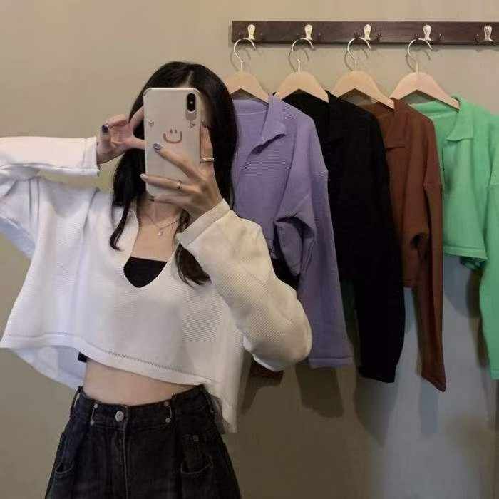 春秋新款韩系温柔风短款宽松长袖针织衫,独立包装,均码面料柔软舒适有弹力,单款多色,1590件,全清4.9元超低价秒杀!分货加一!