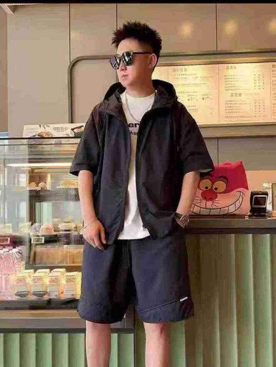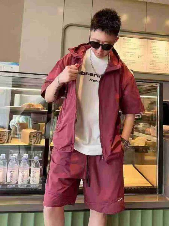 天猫在售款430套左右高品质男女同款夏季薄款潮牌工装休闲防晒衣短裤套装,冰丝速干防水面料,单款三色,M-4XL,独立包装带防伪扣吊牌